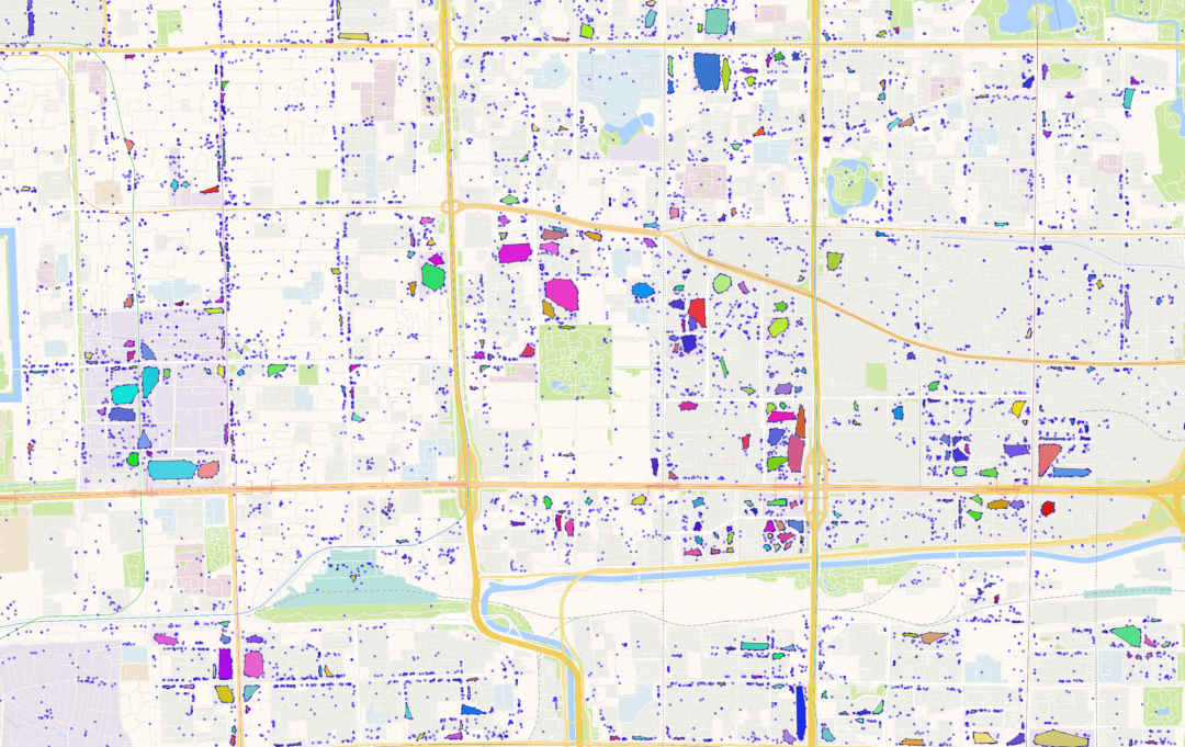 搭建二者桥梁的,主要是缓冲、网格和聚类+凸包三个工具