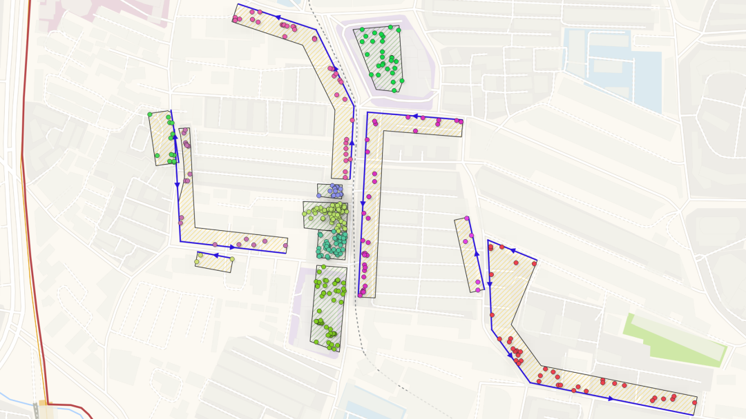 但如果路的两侧都有点,增加了方向来源,就很容易跨区合并