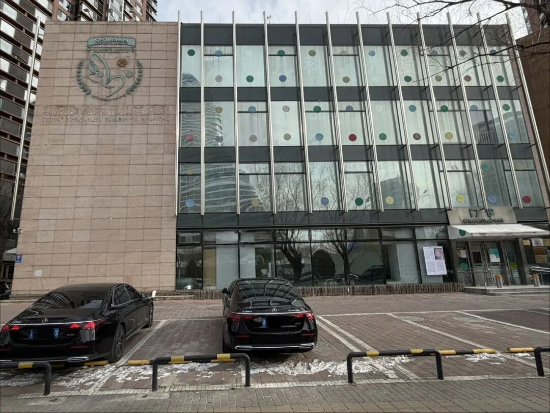 医院位于北京市朝阳区的望京地区,与望京地区的地标望京SOHO仅隔一条马路。医院在周围一片高层建筑中不算显眼,门前停有几辆京外地区牌照的车辆。