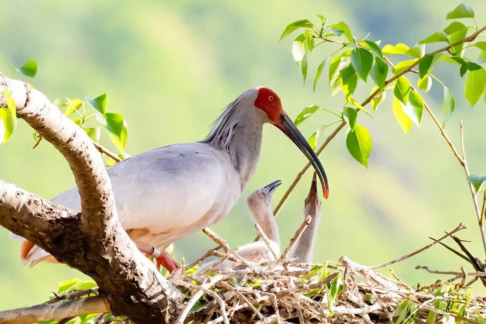 朱鹮夫妻轮流外出觅食以抚育幼崽丨图源:赵海涛摄