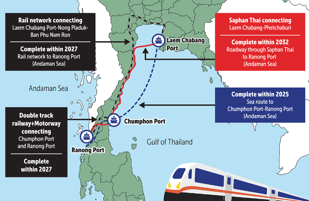 拉廊港(Ranong Port)至曼谷的铁路泰方已自行规划,计划2027年完工(目前似乎尚未动工)。