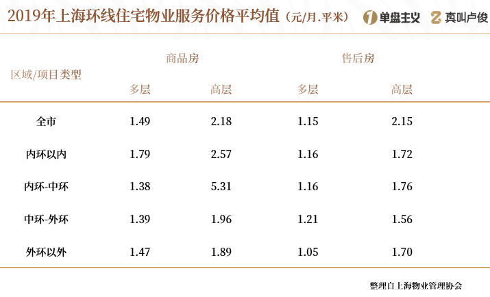 据上海物业管理协会在2019年统计,全上海多层商品房物业费平均值为1.49元/平/月,高层则为2.18元/平米/月