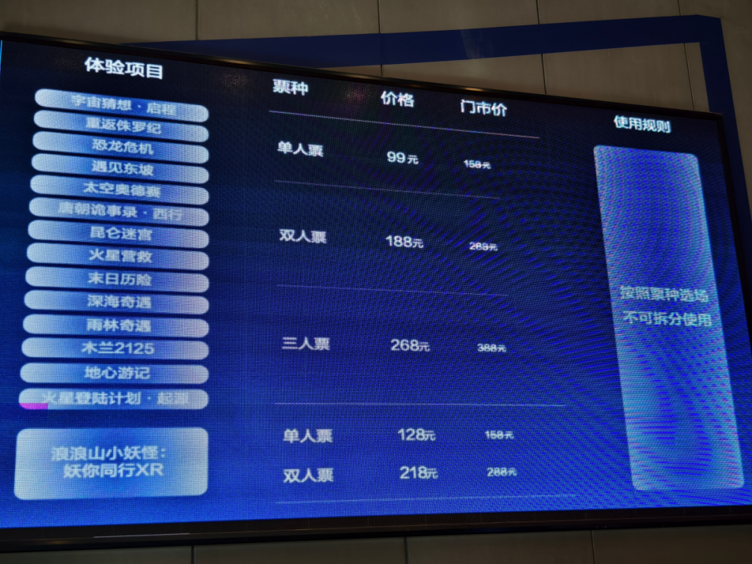 我在淘票票上预购了两张票,计划行进式和坐观式各体验一部。不料《浪浪山小妖怪:妖你同行XR》的票价独一档,需在现场另行购买。