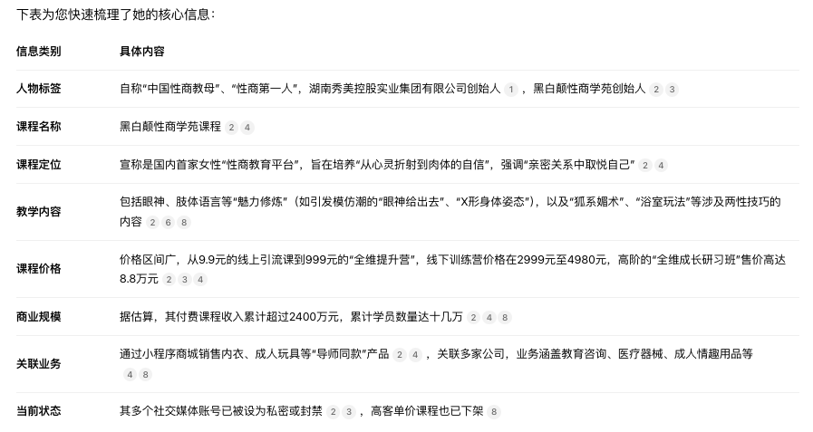 她自称“中国性商教母”、“性商第一人”,其课程和商业模式在网络上引起了不小的讨论。