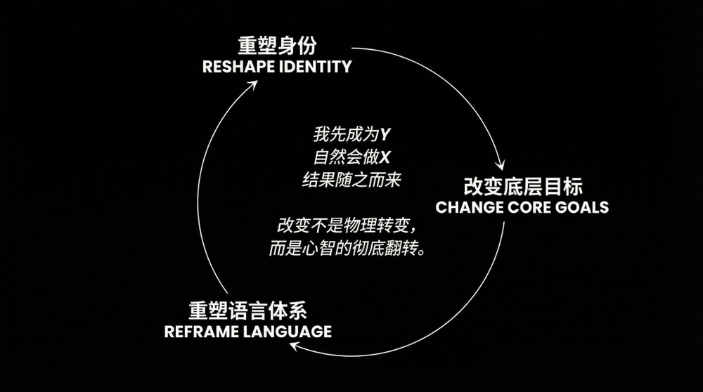 新心智在改变身份认同:我先成为Y→自然会做X→结果随之而来