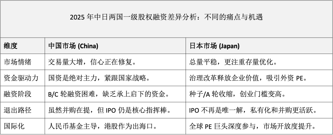 2025年,中日两国的股权投资市场在宏观经济与地缘政治的复杂背景下,展现出了截然不同的演进路径。