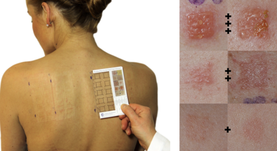 当患者因为某个化合物接触皮肤或者黏膜导致过敏,如果再接触相同的过敏原,或者结构类似的化合物,就会在接触部位再次出现炎症反应。利用这个原理,斑贴试验将小剂量的过敏原放在特制的贴片中,贴在患者的皮肤上,经过一段时间后,观察是否出现阳性反应(红斑、丘疹等)。如果出现阳性反应,就说明患者对相应的化合物过敏,在日常生活或者治疗中最好避免接触这类物质。
