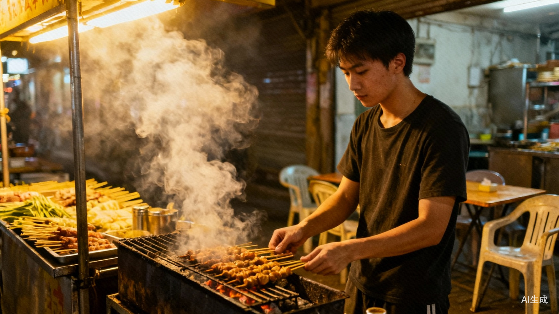就像我最近开始摆摊一样,这个朋友拿张桌子,那个朋友拿张椅子,自己买个小烤炉,生意就开始做了