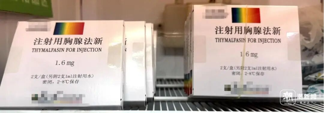 在杭州一家药店的冰柜里,一盒盒的人血白蛋白、胸腺法新注射液被整整齐齐摆放着。潮新闻·钱江晚报记者注意到,人血白蛋白因品牌不同价格不一,最便宜的为420元/盒,胸腺法新为900多元/盒。
