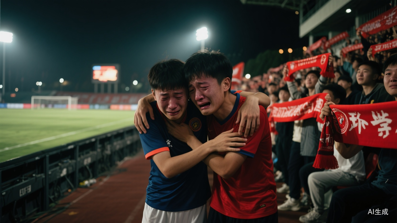 队内发挥神勇的21岁守门员李昊完赛后哭着谢场,现场中国观众们一直在为他打气“李昊别哭”,之后队友陪伴着掩面哭泣的他回到场上参加颁奖典礼。