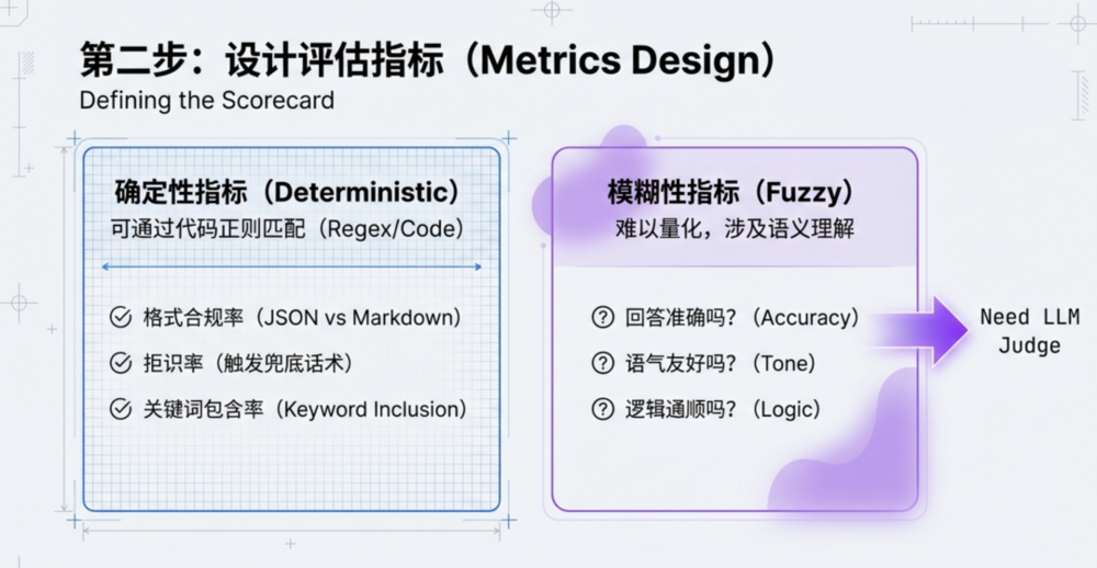 这部分是AI PM最头疼的。回答“准确吗?”、语气“友好吗?”、逻辑“通顺吗?”