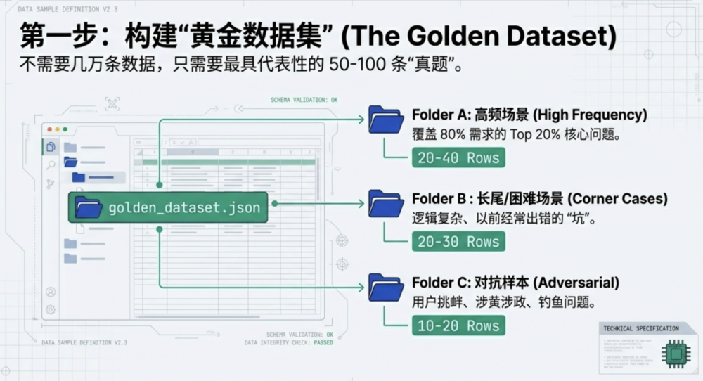 不需要上来就搞几万条数据,那是大厂基建组的事。作为业务PM,你只需要准备50-100条最具代表性的Case。