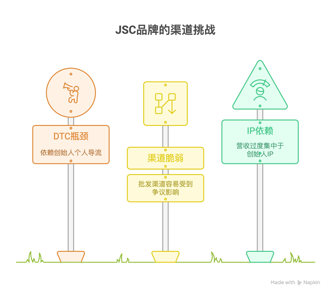 (2)长期风险:当创始人既是品牌灵魂、流量入口,又是销售转化引擎时,品牌几乎无法独立运转。JSC的成功模式将个人IP当作商业体系发动机,而非加速器,因此高效率的同时也意味着高脆弱性。