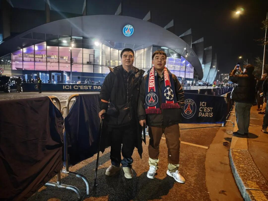 当地时间比赛日当天,父子俩的行程紧张而充实。下午6点多从布鲁塞尔抵达巴黎后,他们先将行李送至酒店,便马不停蹄赶往王子公园球场,全程辗转近两小时,终于在开赛前顺利入座。