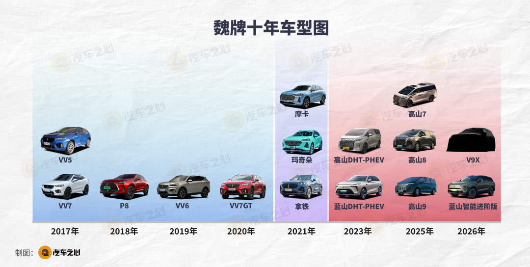 组织架构的高频变动一定程度造成了魏牌的战略连续性和执行力被削弱。但不可否认通过这10年的打磨,魏牌正在重新找到手感。