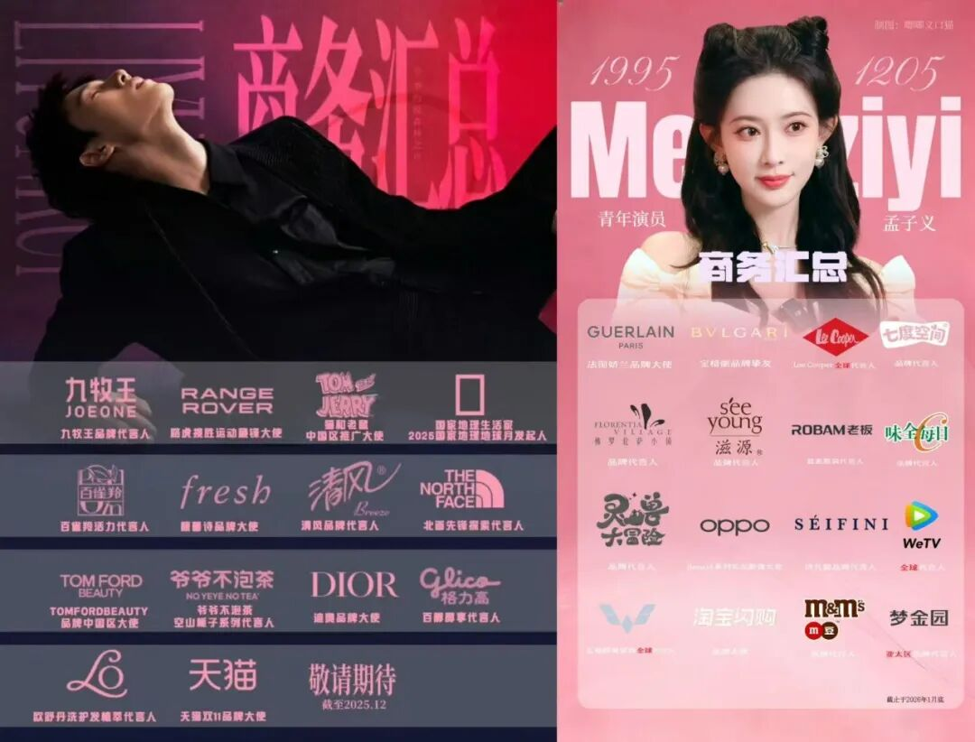 与腾讯视频合作密切的艺人,相较于与其他平台艺人,播剧的商务资源回馈明显更优。被称为“鹅太子”的周翊然,以及“鹅公主”孟子义,都拥有娇兰、宝格丽的商务资源。很多品牌因为从选秀时期就合作“鹅系”艺人,被戏称为祖传资源。