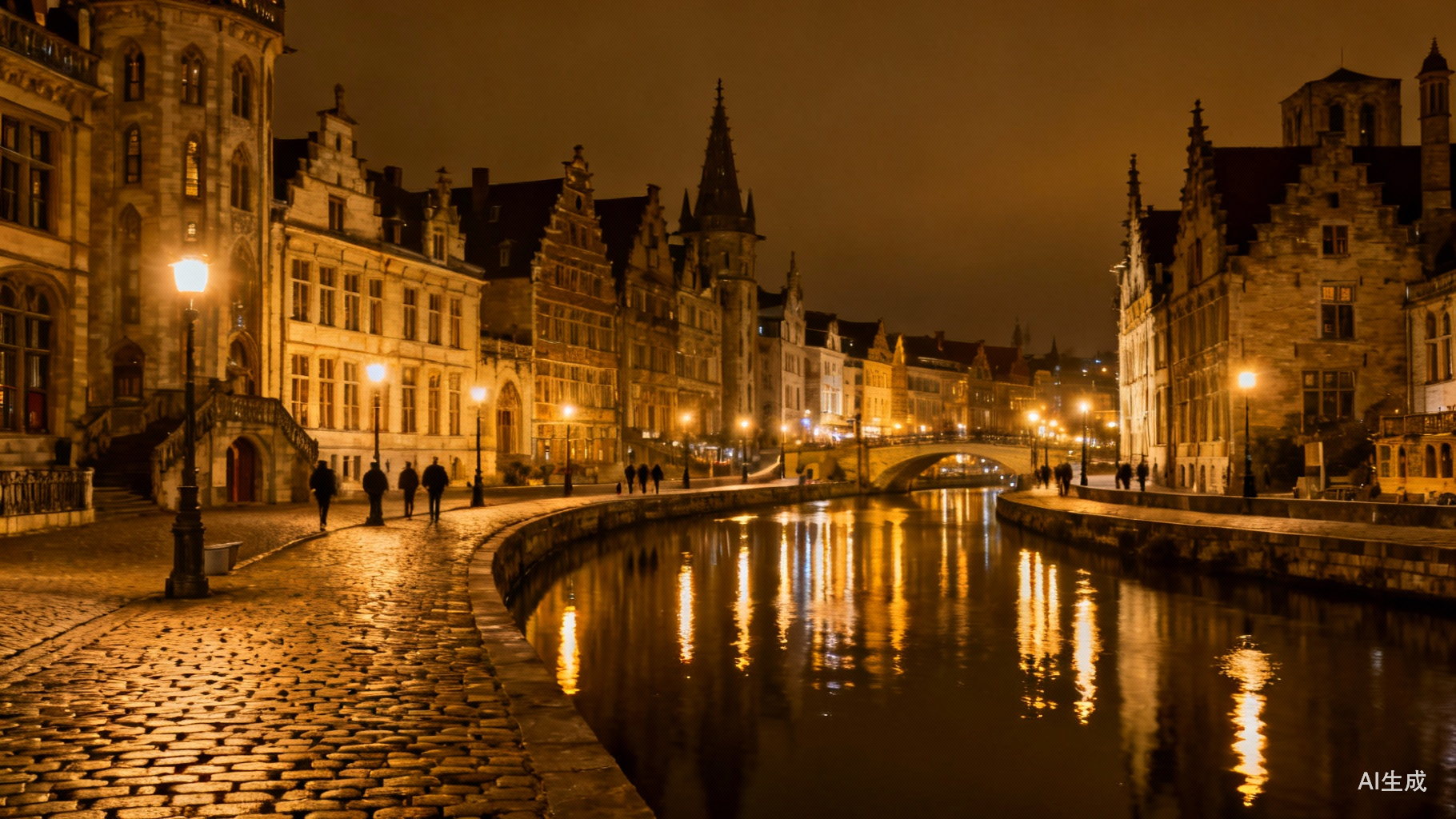 左图:傍晚河边人家的灯火和悠悠流淌的河水。中图:低调的比利时人建造的幽静水道和小船。右图:傍晚的香草河岸上弗拉芒特色的建筑立面装饰和宁静祥和的灯火。|图源:笔者拍摄