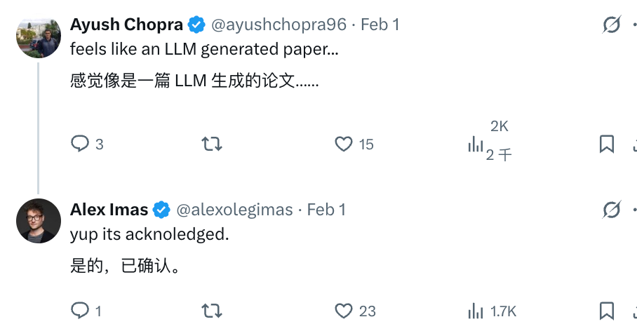 然而尴尬的是,这篇内容翔实,分析到位的论文,有网友在评论区说,“怎么看着像是 AI 写的论文”,然后发帖的博主回复,确实是 AI 写的。