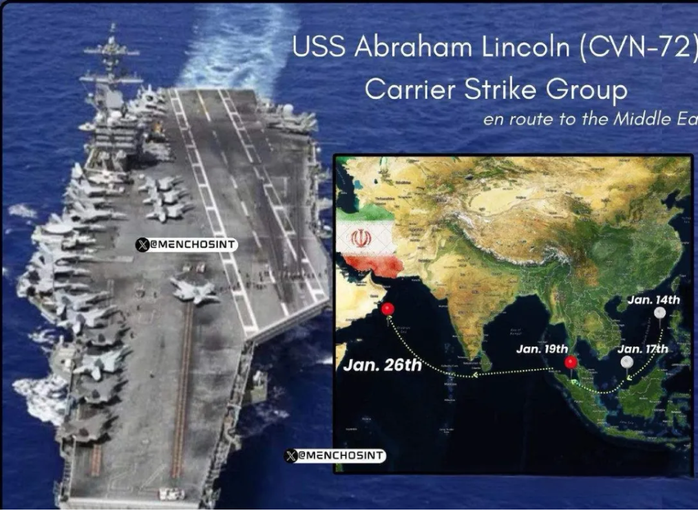 伊朗武装部队总司令阿米尔·哈塔米表示:2026年1月24日,伊朗无人机跟拍到美军林肯号航母战斗群清晰视频,并公布到网上。
