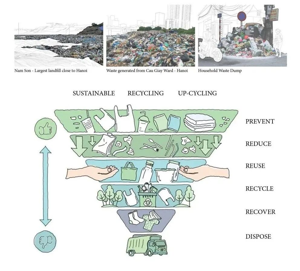 塑料袋回收再利用示意图©ODDO architects