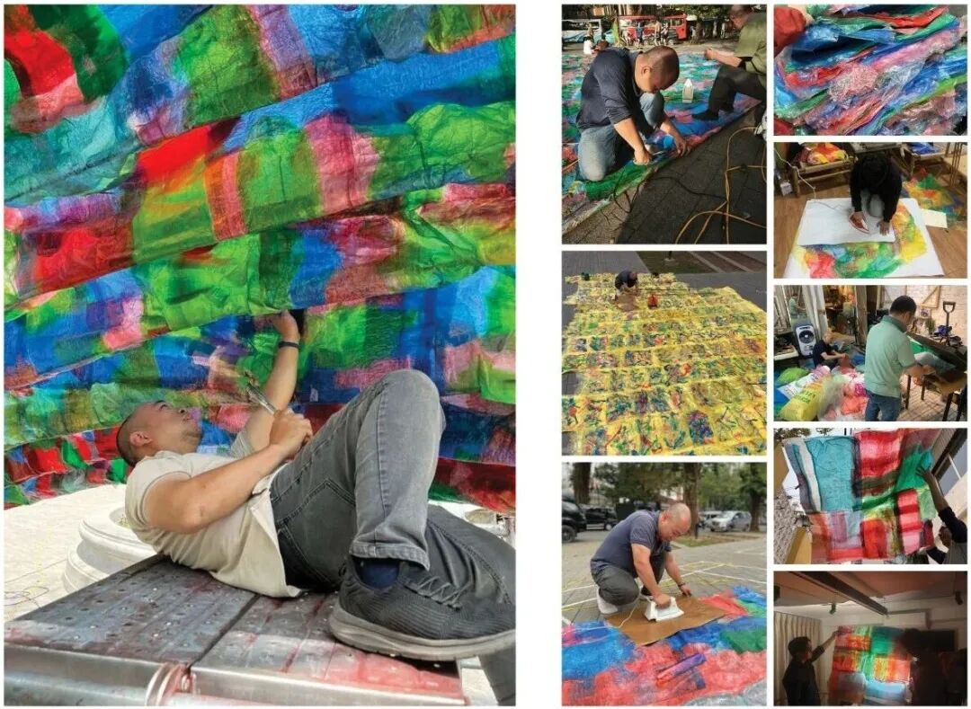 河内以其深厚的文化底蕴和周边遍布的手工艺村落而闻名,为材料实验提供了沃土。这座展馆的设计灵感源自河内悠久的手工造纸(Giấy Dó)传统以及当地城市社区中常见的非正式建造方式。通过将回收塑料购物袋与传统手工纸相结合,这座建筑连接了过去与未来——将本土工艺与现代可持续发展理念完美融合。轻盈的钢结构框架将这些元素连接起来,呼应了河内本土建筑的适应性和资源利用特性。