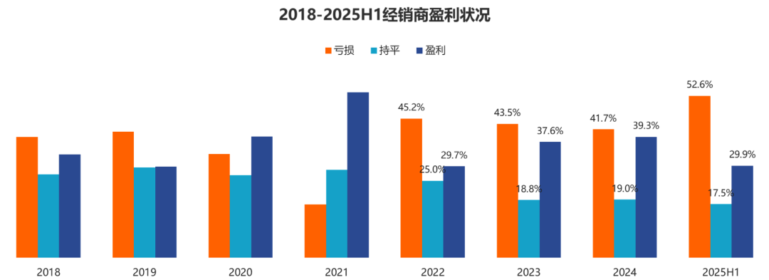 虽然2025年全年的数据还没有出炉,但是这份报告所提供的最新数据已经足以让我们了解经销商这个群体的生存状态。