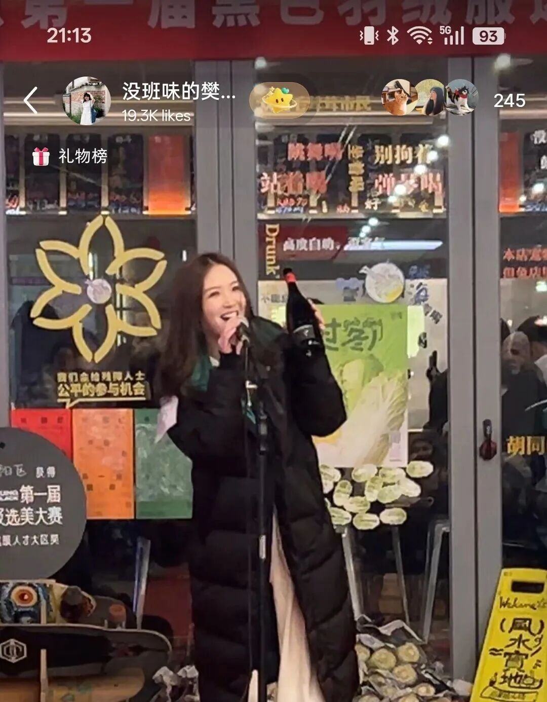 还有画了一下午特效妆的小姐姐,现场开始唱美声,在她唱歌时,一直收音不好的音响都好起来了,弹幕狂夸:“这是在维也纳金色大厅吗?”“羽绒服里是装着百灵鸟吗?”