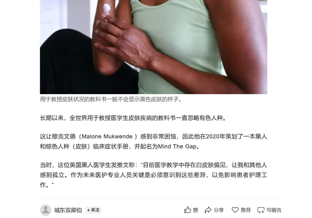 主流医学教材中超过90%的皮肤病图片为白人皮肤,导致医学生无法识别深肤色病变