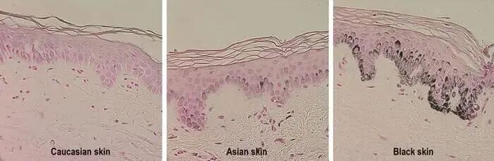 而在白人皮肤中,黑色素体往往多个聚集成簇,像“扎堆防守”,留下大量微观漏洞。这种结构性差异,才是深肤色抗晒力更强的根本原因。