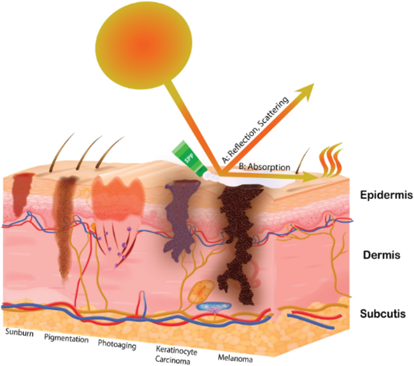 图注:防晒霜反射散射阳光发挥功效
