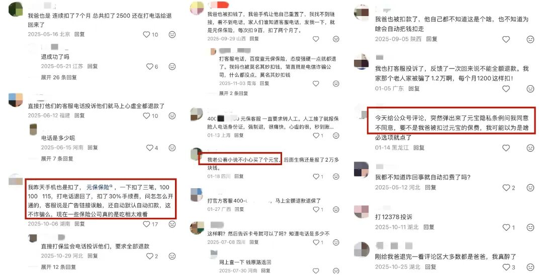 也有人表示,“我老公看小说不小心买了个元宝,后面生病还是报了2万多块钱。”