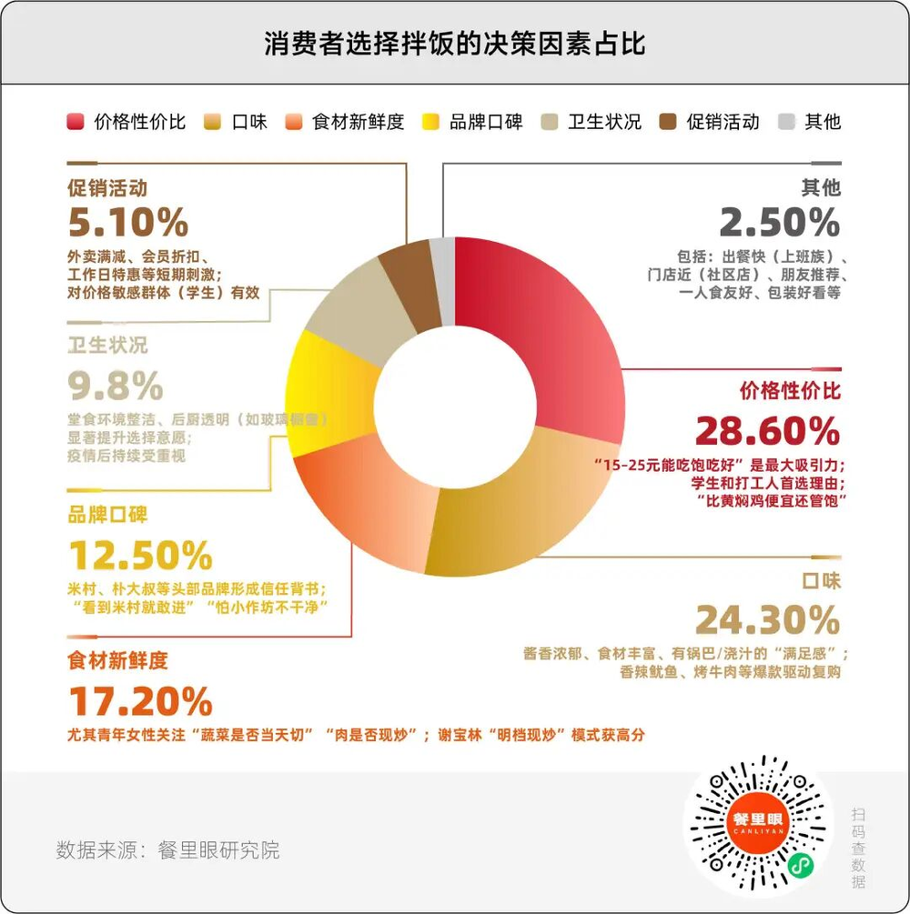 饱,指的是饱腹感;省,指的是性价比。拌饭被称为“打工人顶流”是有原因的,拌饭品类的消费决策逻辑,高度贴合其“民生快餐”的核心定位。
