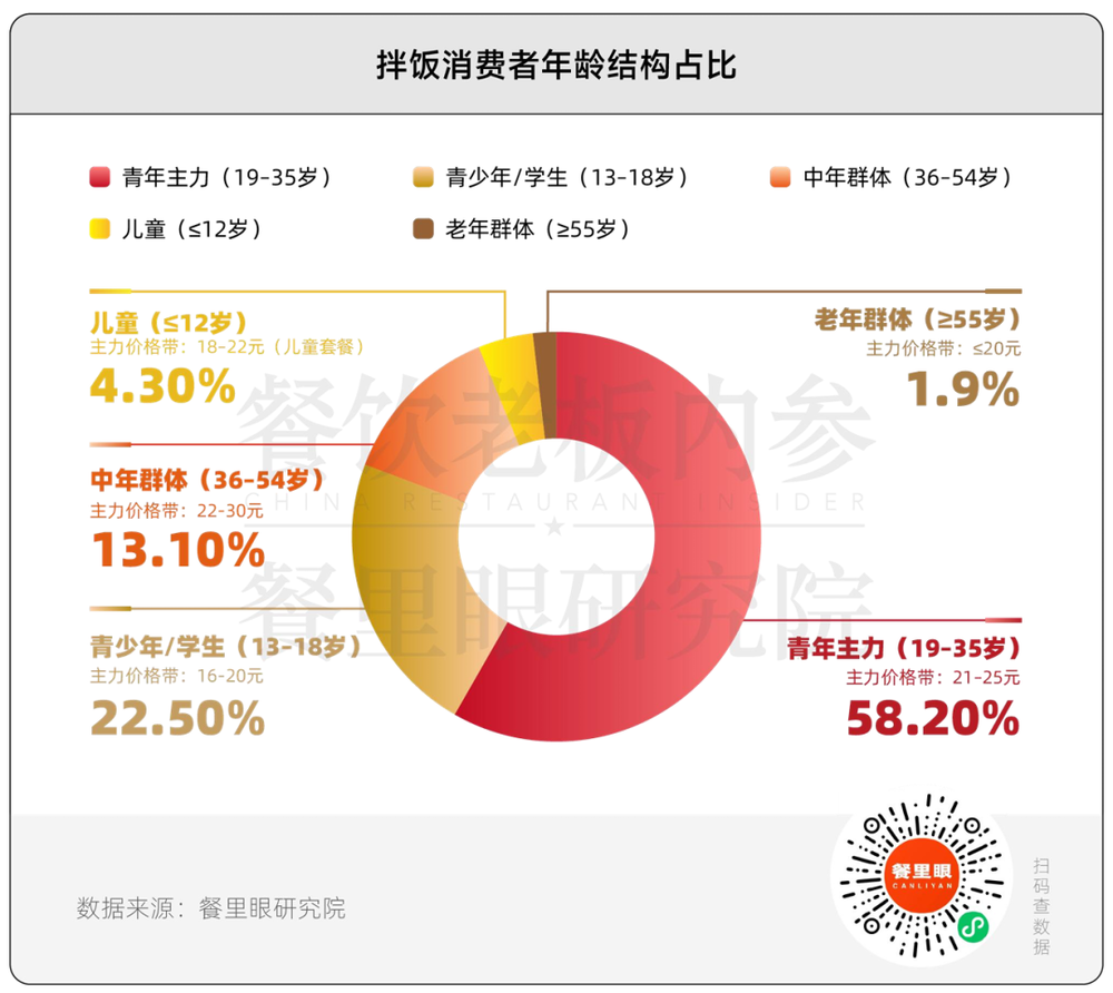 餐里眼数据显示,拌饭消费人群呈现鲜明的年轻化特征,19-35岁青年群体以58.2%的占比成为品类发展的绝对基本盘。