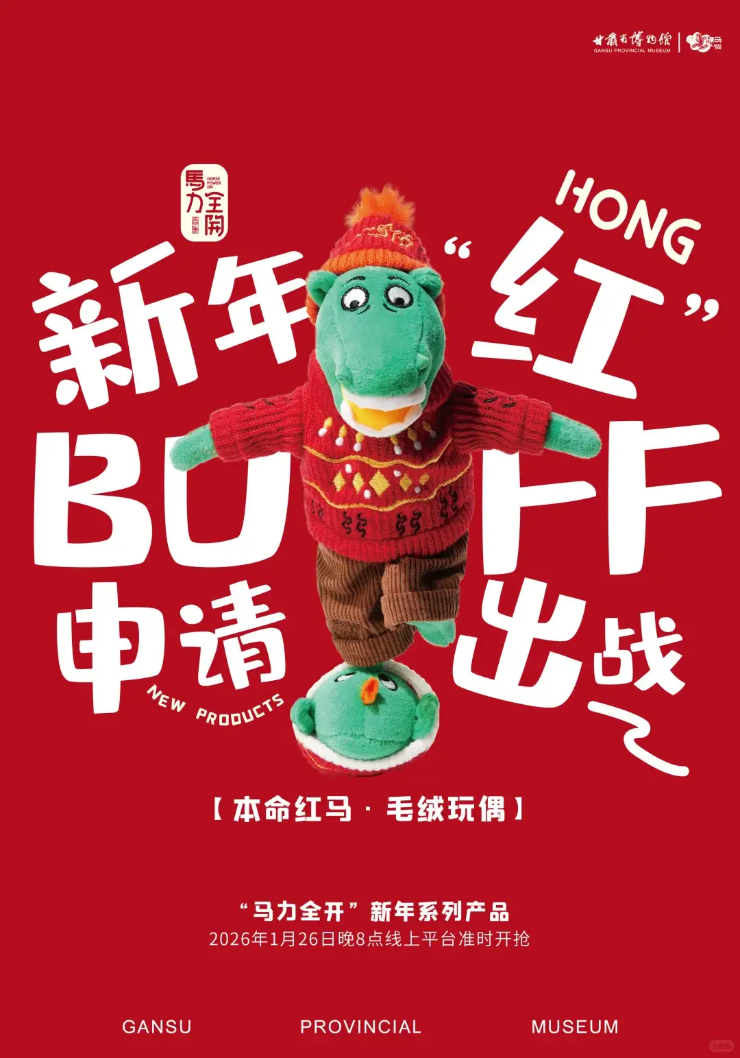 比如甘肃博物馆的大网红“绿马”,不正经、略带抽象的毛绒IP,跟传统意义上的“马到成功”氛围完全不一样,但却恰好契合了当代年轻人的精神状态。其马年新品,再次爆火。