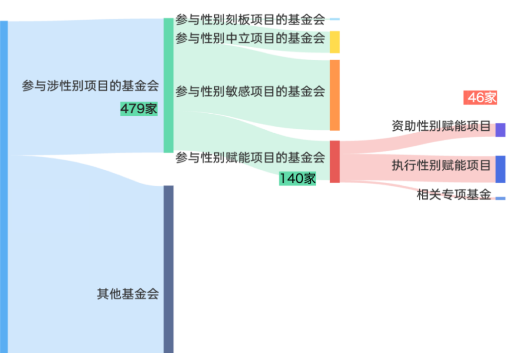 我国境内公益基金会数量总计已超过9000家,只有46家为性别赋能型项目提供过资助。图源:同声异响。