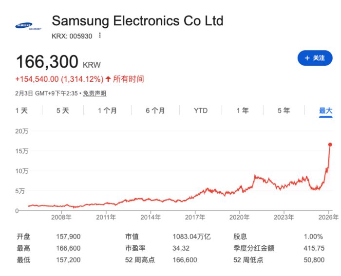 非常好笑的是,三星手机刚刚经历了一段最艰难的日子,三星集团的股价反而在25-26财年持续向好: