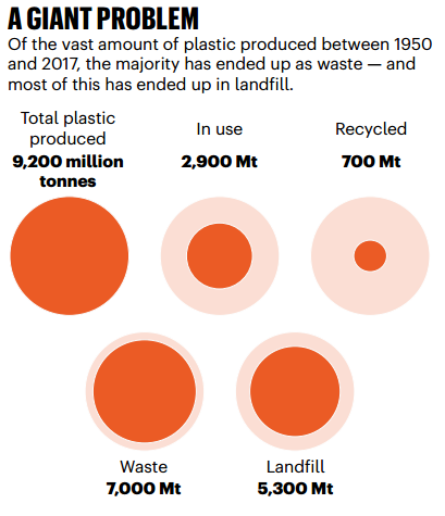 1950-2017年,人类生产的塑料,最终大多变成了永久垃圾,回收利用率低得惊人。