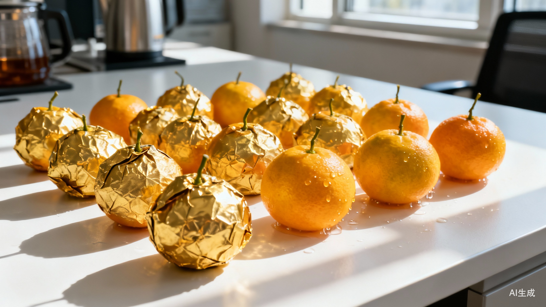 最近,字节同学们(字节打工人以同学自称)的下午茶在社交平台上火了。一颗颗金桔包裹着金光闪闪的金箔纸,最开始整齐地摆放在茶水间,不懂下午茶为啥要发巧克力的打工人转身选择了其他水果,回到工位却发现同事们都在赞赏这“巧克力”的美味。