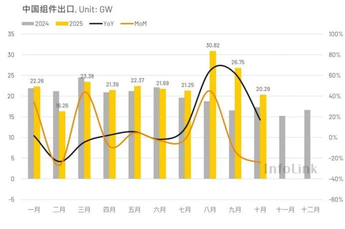 此外,出口退税政策的调整,还引发了企业的“抢出口”行为,短期内在一定程度上提振了组件需求。Infolink数据显示,2025年7-10月,在出口退税取消的预期下,国内组件出口量已出现明显上涨,海外市场形成了一定的库存,但2026年开年政策正式落地后,企业仍在抓紧最后的窗口期抢出口,短期需求的增加进一步强化了组件涨价预期。