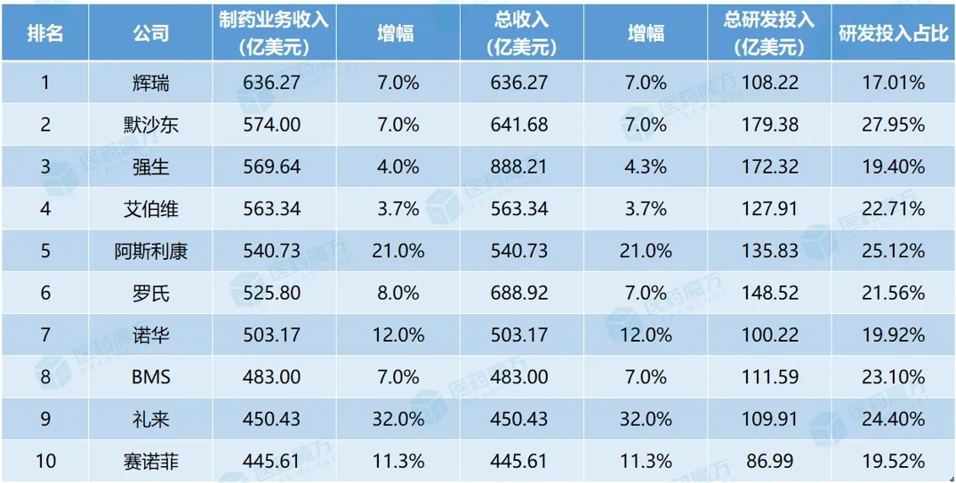 从全球制药业的竞争格局看,依然延续“强者恒强”的趋势。