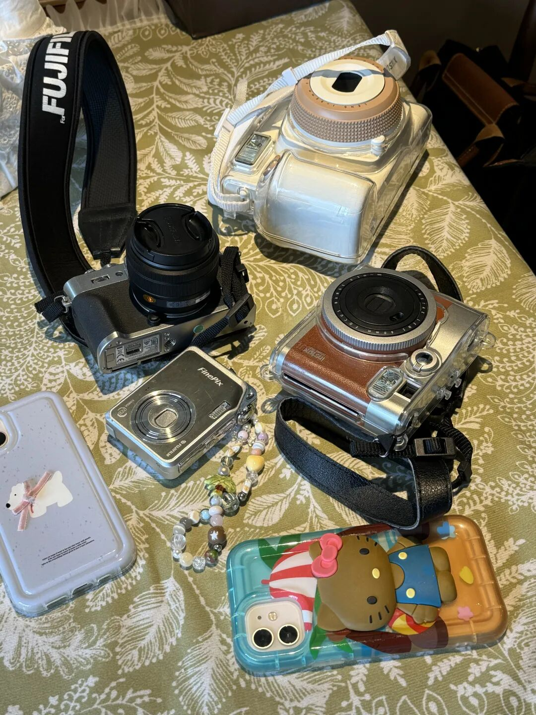 陪拍师杨树观察到,2023年流行CCD(一种感光元件,能拍出复古风的照片),2024年又流行“县城文学”风格的照片。为了满足顾客的需求,她囤了两台CCD、一台单反、一部理光卡片机、一部胶片机和数部手机。她还会回收一些溢价的毛坯机(通常指未激活或功能简化的旧款手机),比如iPhone 6 Plus。
