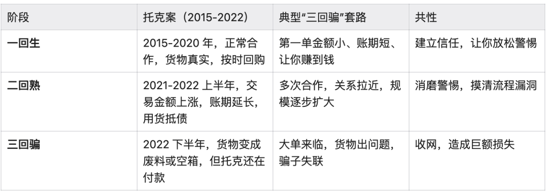 对比分析:托克案与“一回生、二回熟、三回骗”的共性