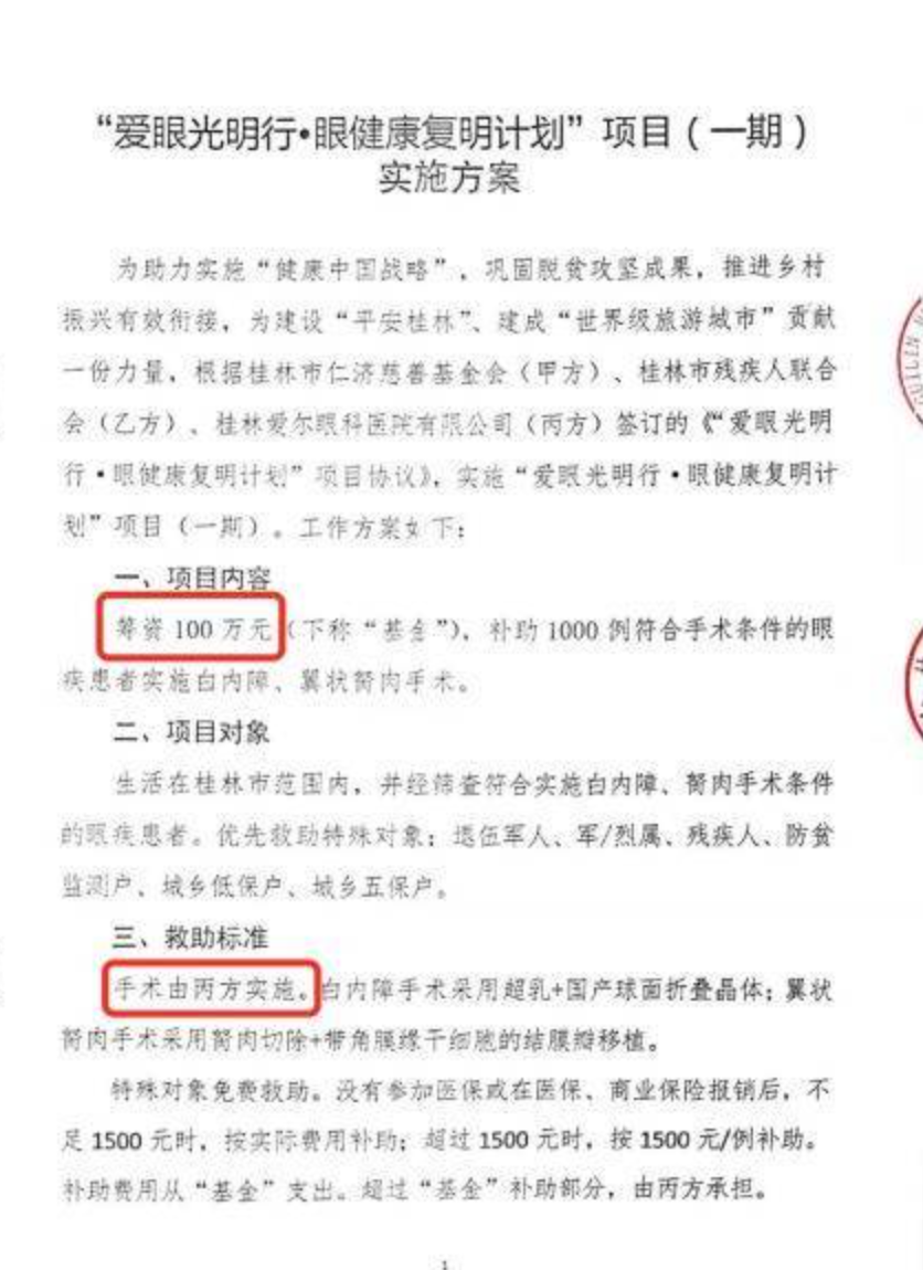 报道称,相关文件明确要求,参与慈善活动的村民必须在桂林爱尔眼科做手术。而爱尔眼科每完成一例手术就能从医保基金中报销约1300元,其手术实际成本远低于该金额,相当于通过慈善活动引流,赚取医保基金差价。