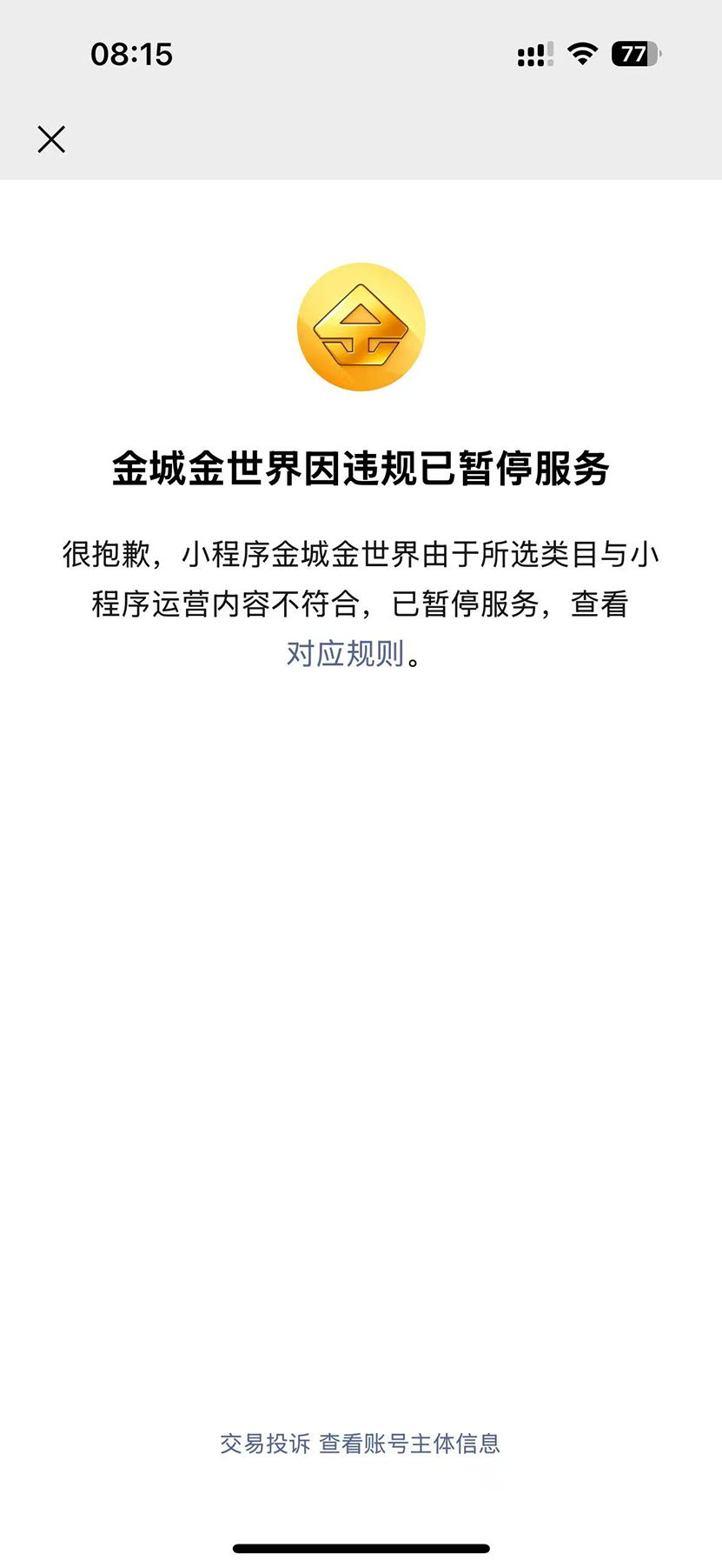 多名受损者也反馈,在杰我睿旗下多个小程序上,均未见过相关资质公示。目前上述小程序已无法在微信平台搜索到,“金城金世界”等更是因涉嫌违规被关闭。