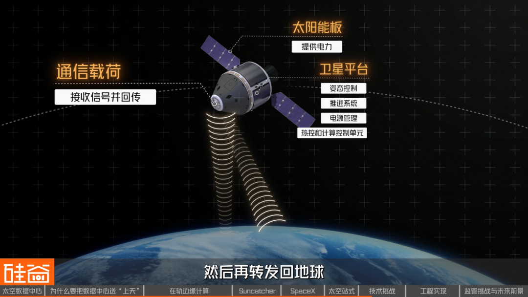 在这个设想中,太空算力并非独立运行的“外星系统”,而是被纳入现有云计算体系,成为地面云的一部分。它不追求全球移动覆盖或承担用户直连通信,主要任务是为地面数据中心分担算力压力。简单来说, 你可以把它理解为悬挂在太空中的“超大规模算力机架”。