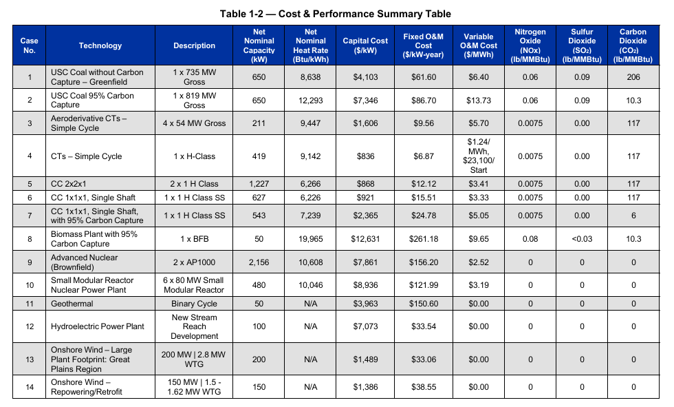 根据EIA(美国能源信息署)发布的《公用事业规模发电技术资本成本和性能特征估算》(Capital Cost and Performance Characteristic Estimates for Utility Scale Electric Power Generating Technologies)报告,见上图👆——
