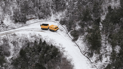 国网湖北送变电工程有限公司出动过超过11米长的“蟒式”全地形履带车,碾过湿滑的冰雪山路,将智能飞行除冰机器人及作业人员,安全运抵山顶塔位。