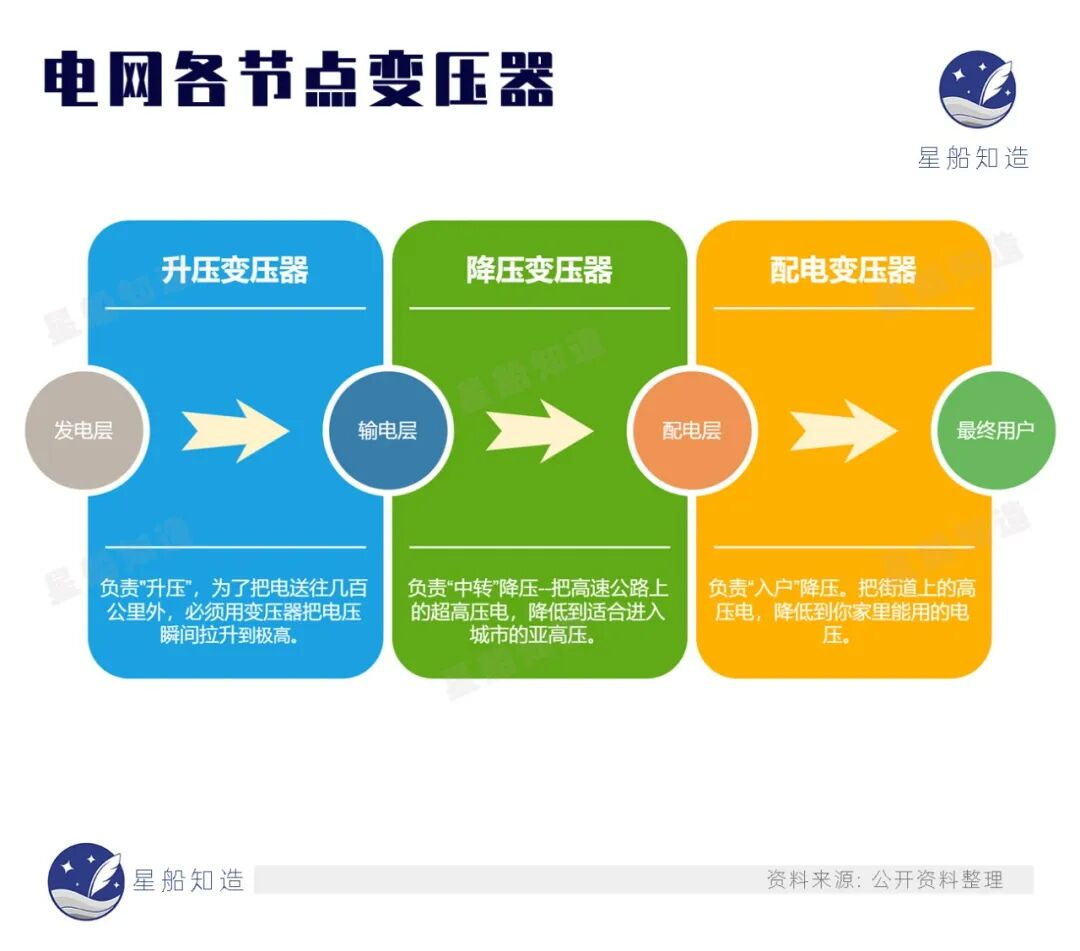 陷入“先有鸡还是先有蛋”无尽螺旋的“燃气电厂”处于美国电网最上游,战死的南方黄松处于电网最下游的配电层——而变压器不属于单一环节,它是贯穿整个产业链的“关节点”。见下图👇