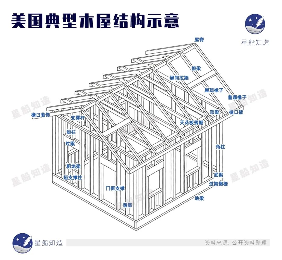 制图:星船知造。南方松一天就能搭起郊区几十栋房子的骨架。