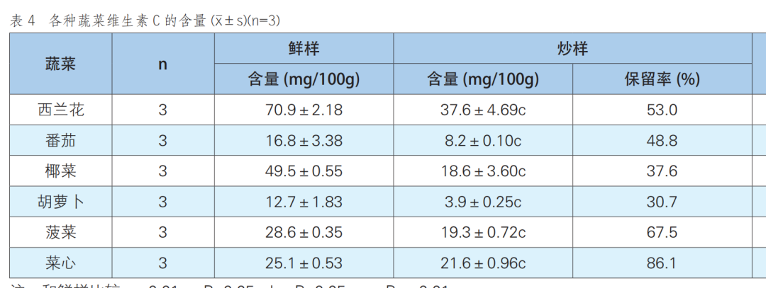 不同食物榨汁的维生素C保留率[2]